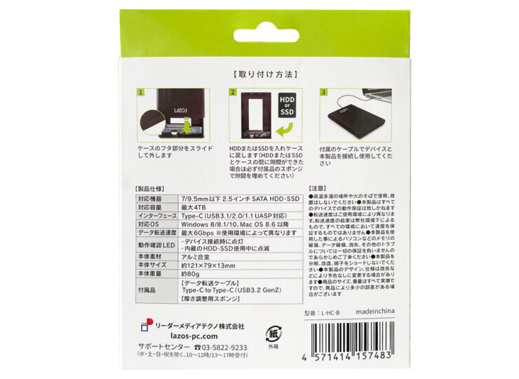 ZAZOS 2.5インチ HDD/SSDケース Type-C リーダーメディアテクノ:L-HC-B ZAZOS 2.5インチ HDD/SSDケース Type-C リーダーメディアテクノ:L-HC-B (4571414157483) 在庫状態 : 在庫有り ¥1,540(税込) 数量個